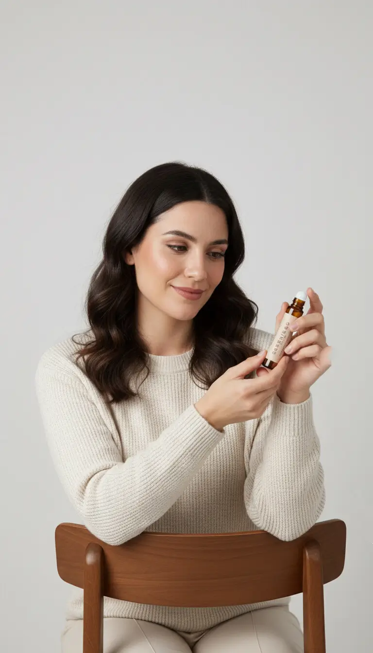 Aplica con el roll-on directamente en los puntos de pulso: muñecas, sienes, detrás de las orejas y parte posterior del cuello.